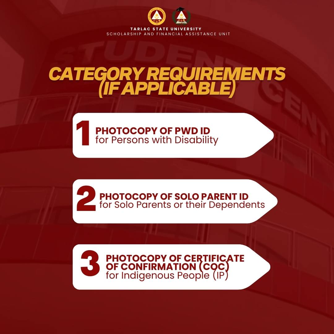 Where to Submit: Tarlac State University, Lucinda Campus Student Center Building, Scholarship and Financial Assistance Unit